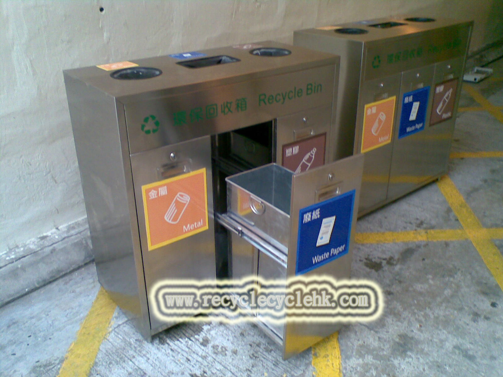 由二零零六年起本港多個公眾地方均放置了三色回收箱,透過三色回收箱將廢紙、塑膠物料和金屬物品進行分類供循環再造之用。